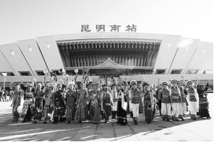 云南探索“高鐵沿線創(chuàng)建聯(lián)盟”等創(chuàng)新做法,全面深入持久開展民族團(tuán)結(jié)進(jìn)步創(chuàng)建工作。圖為各族群眾在慶祝高鐵開通儀式上載歌載舞。云南省民宗委供圖