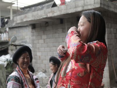 貴州貴陽苗族婚禮上新郎新娘裝...